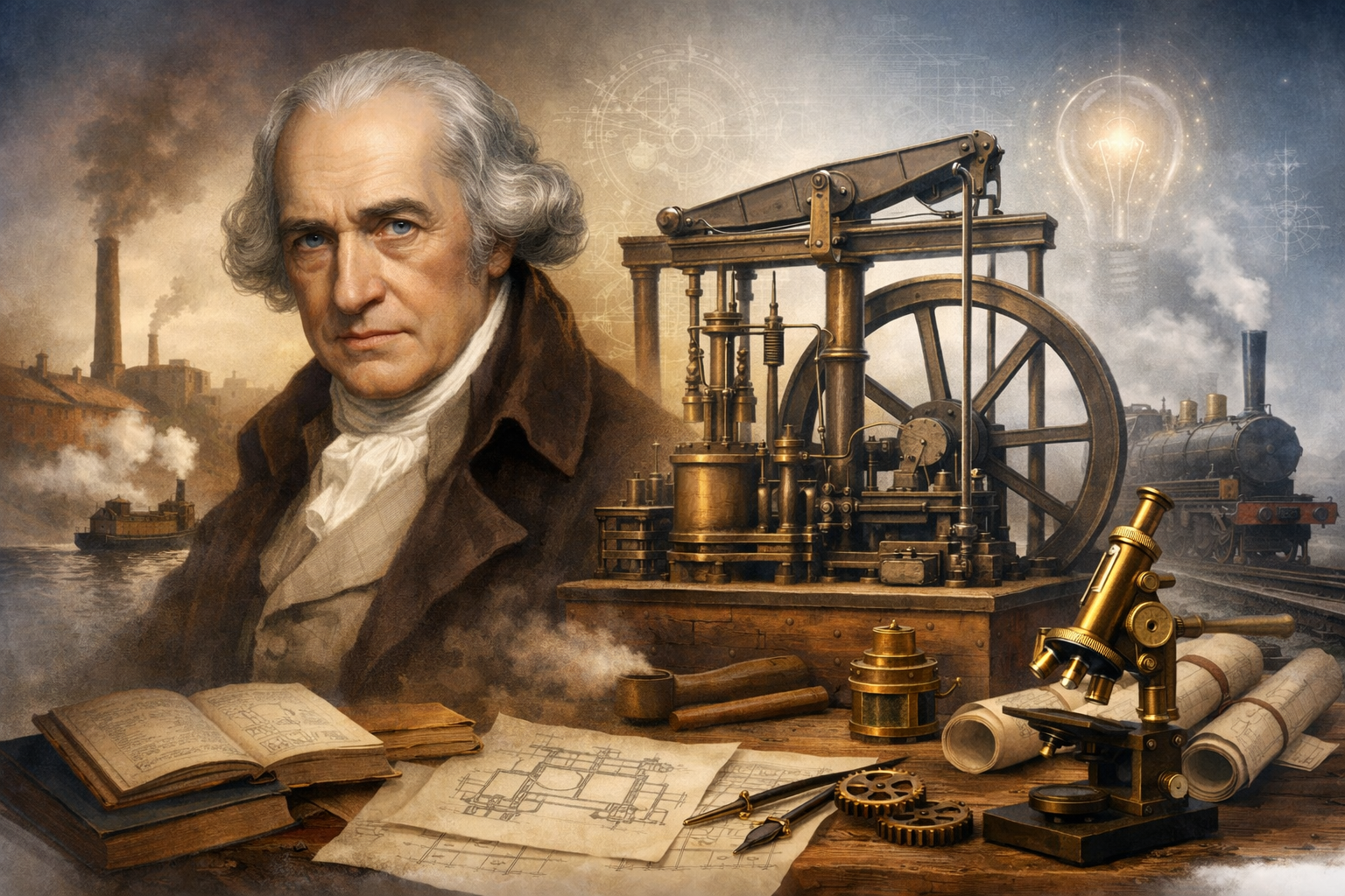 James Watt, modern buhar makinesinin geliştiricisi olarak endüstri devrimini başlatan İskoç mucittir. 1736’da doğan Watt, buhar gücünü verimli hale getirerek sanayide devrim yaratmıştır. Ölçüm aletlerinden mühendisliğe uzanan kariyeriyle bilim ve teknolojide kalıcı izler bırakmıştır.