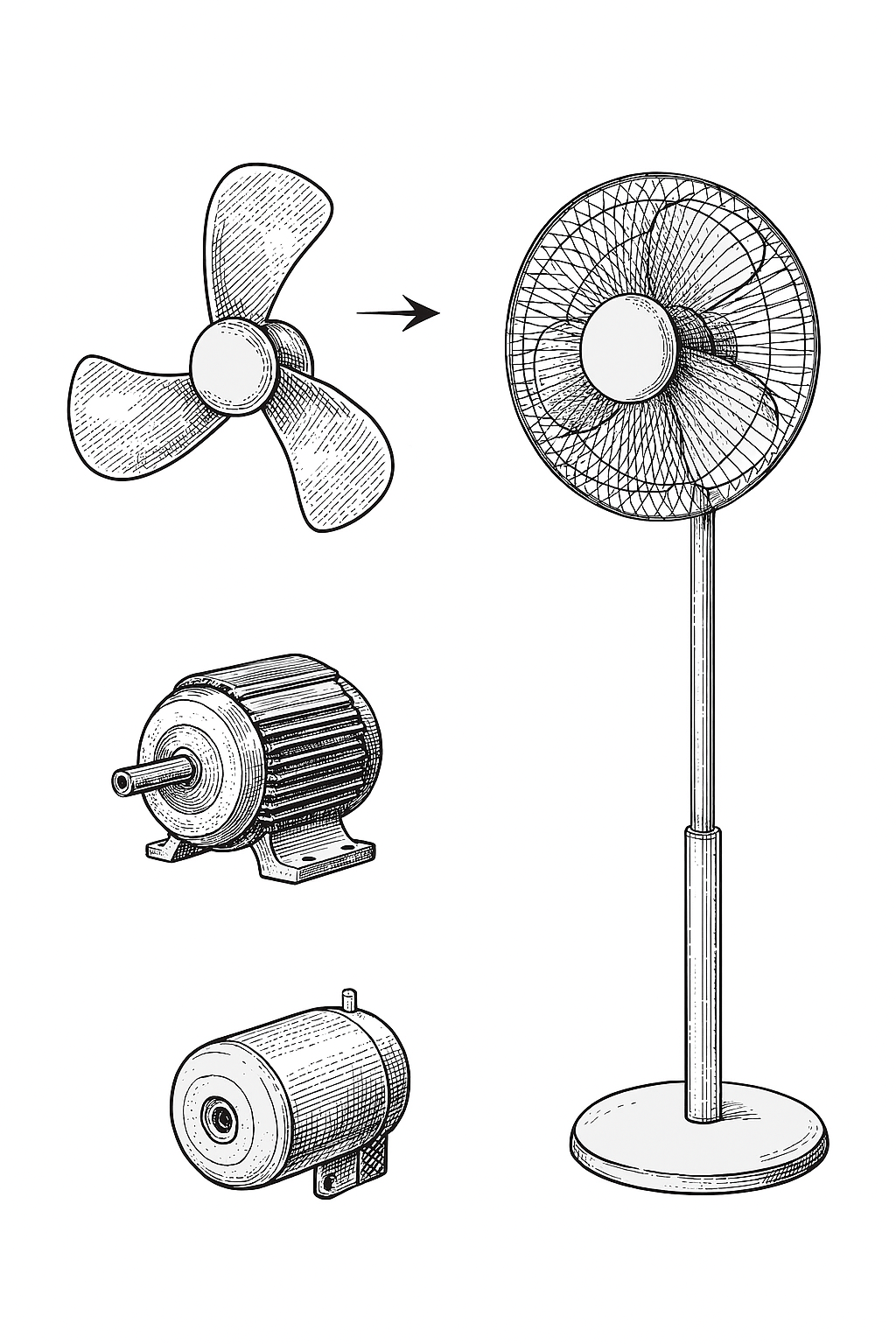 • Pervane (Kanatlar): Havayı yönlendirir ve akım oluşturur.